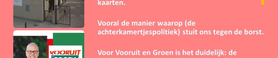 Dit gebrek aan transparantie, deze achterkamertjespolitiek, de onwaarheden op de vorige GR en het feit dat de meerderheid alles kwijt wil wat geld kost, is niet alleen politiek én beleidsmatig zeer onverstandig, maar is lachen met de principes van deontologie en de democratie en zal opnieuw de anti-politiek voeden.