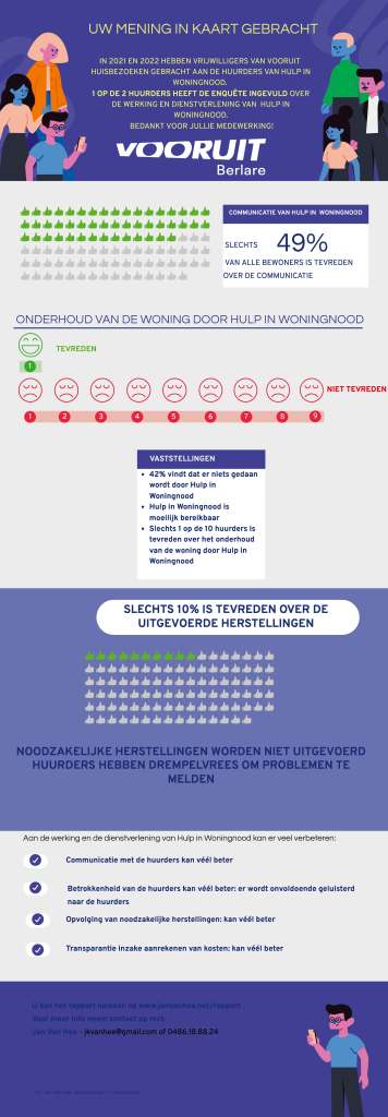 Gedurende 2021 en 2022 deden de vrijwilligers van Vooruit Berlare een uitgebreide analyse van de dienstverlening van onze Sociale Huisvestingsmaatschappij.